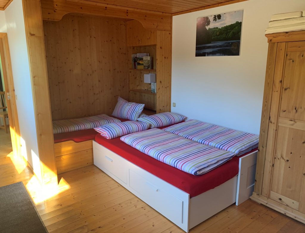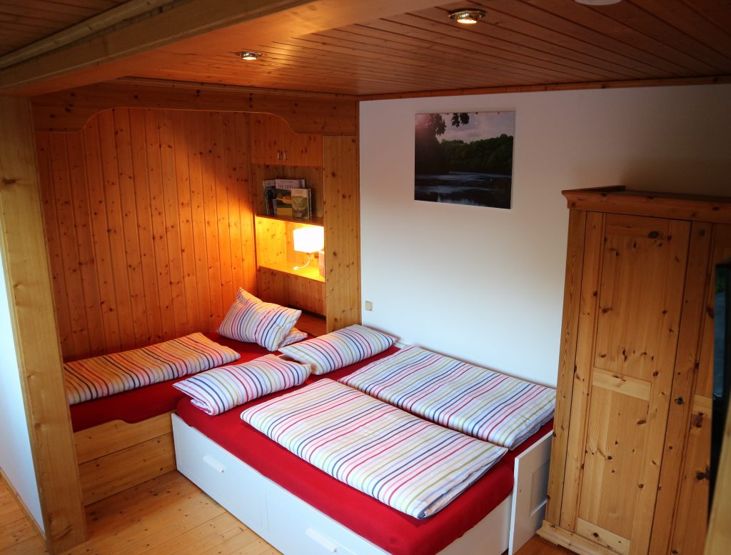 - Im Schlafzimmer gibt es ein Doppelbett und ein Einzelbett.