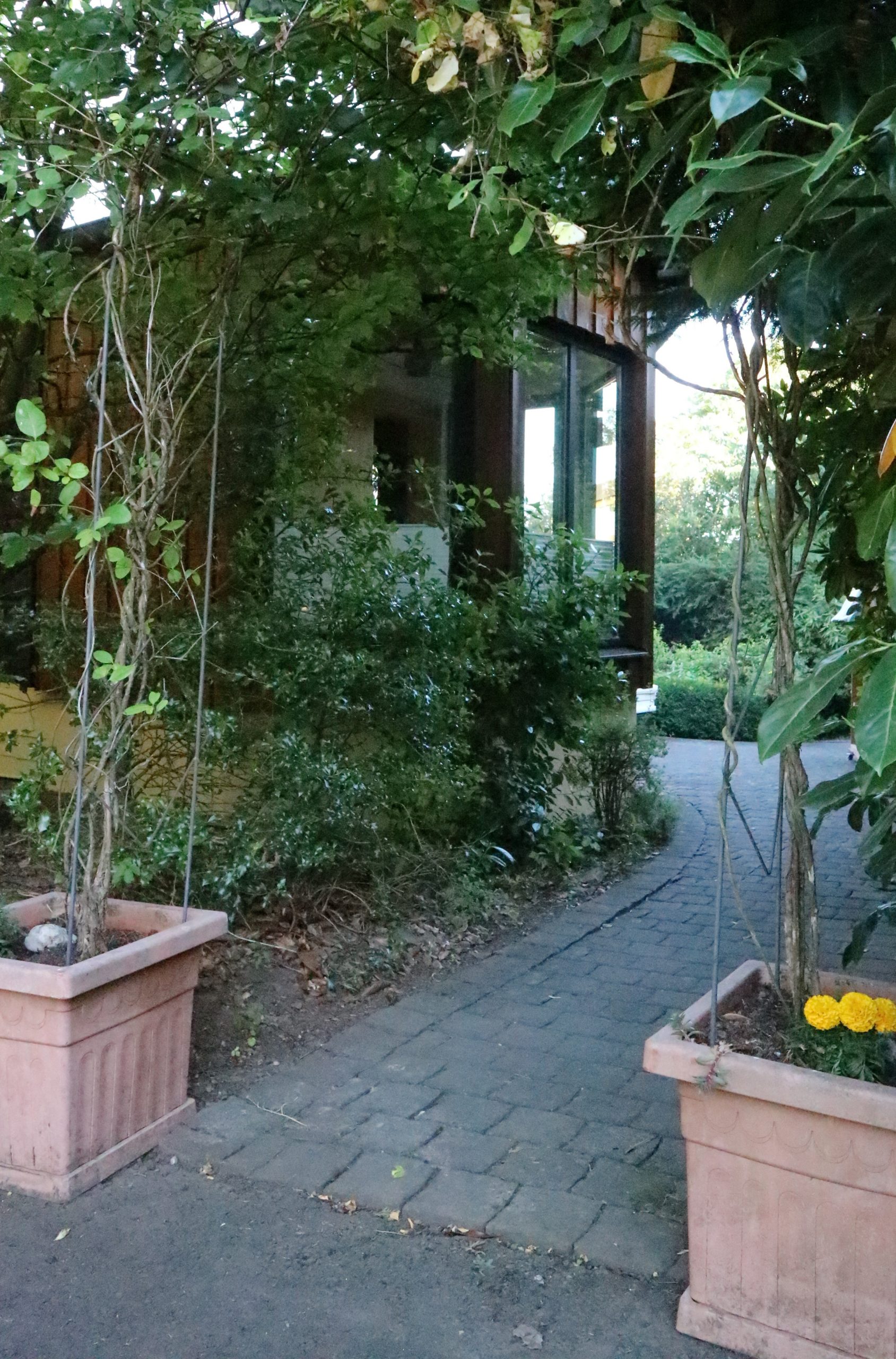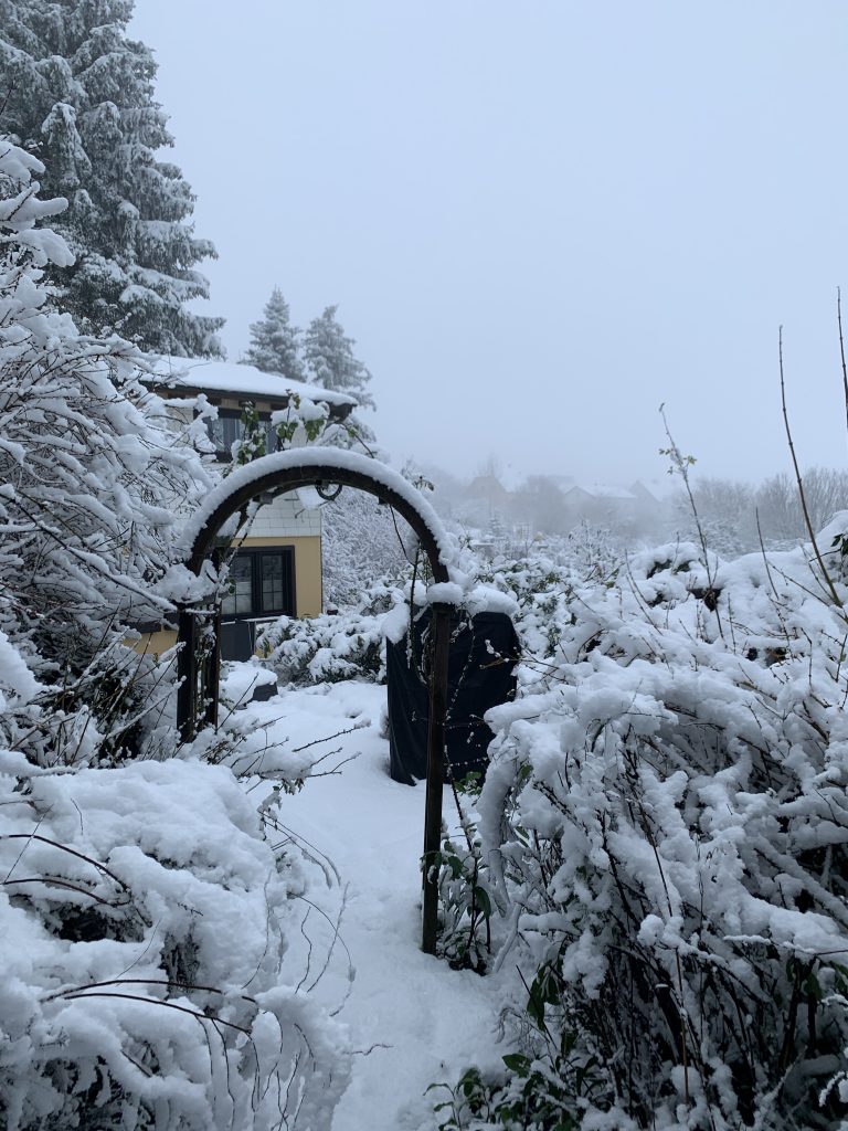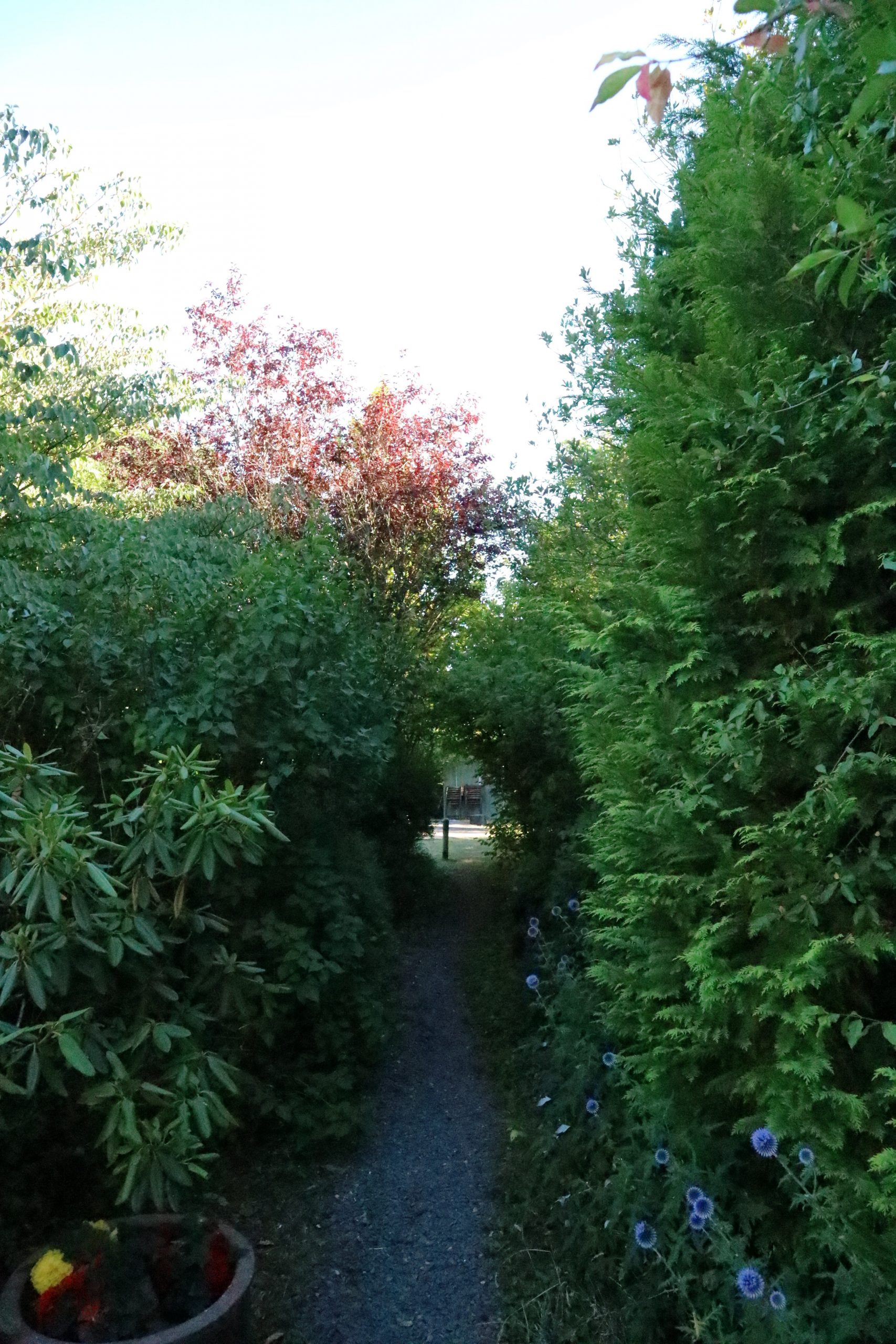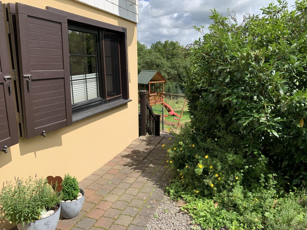 Der Garten des Hauses steht beiden Wohnungen zur Verfügung. Vom Frühling bis zum Herbst finden sich dort – je nach Jahreszeit – die unterschiedlichsten Blumen und Blüten, sodass der Garten immer wieder seine Gestalt wandelt. Das Grundstück ist vollständig umzäunt.