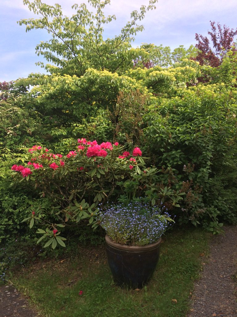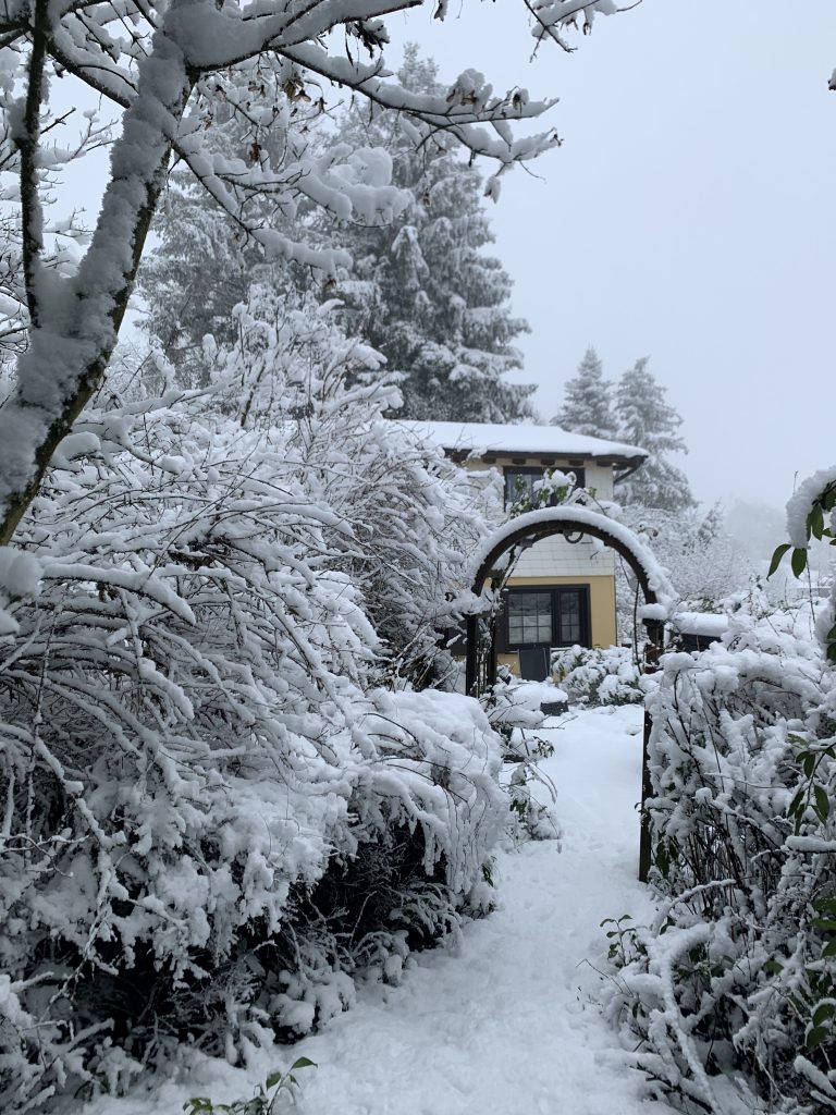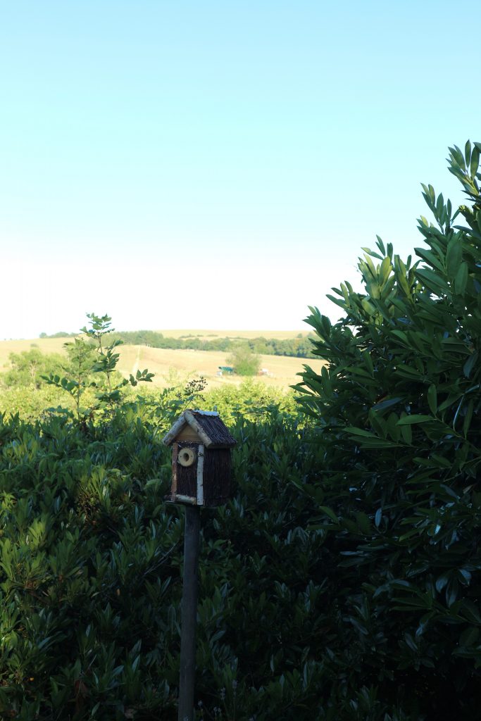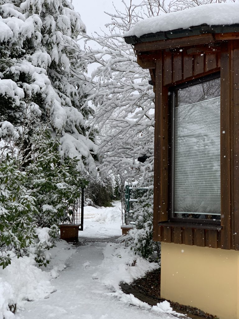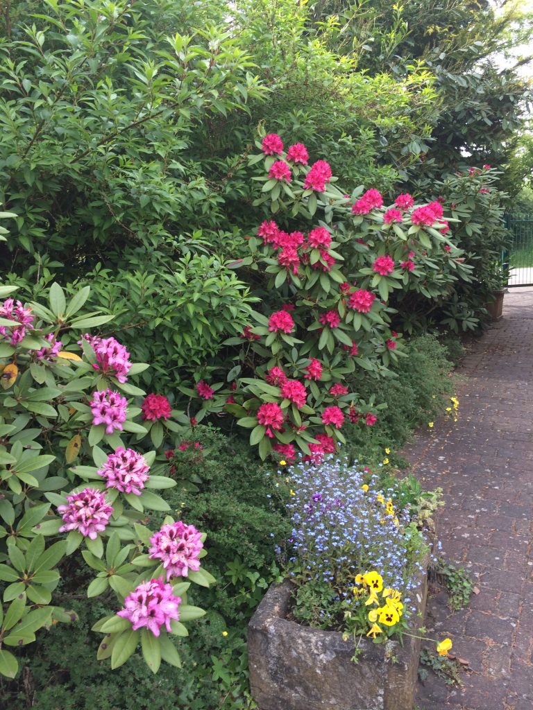 Der Garten des Hauses steht beiden Wohnungen zur Verfügung. Vom Frühling bis zum Herbst finden sich dort – je nach Jahreszeit – die unterschiedlichsten Blumen und Blüten, sodass der Garten immer wieder seine Gestalt wandelt. Das Grundstück ist vollständig umzäunt.