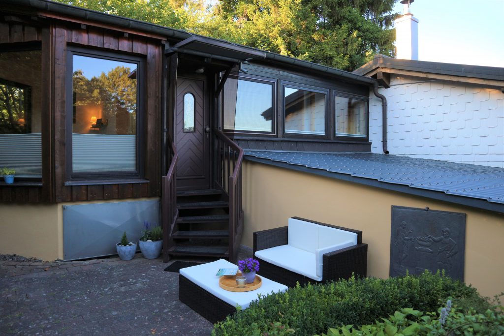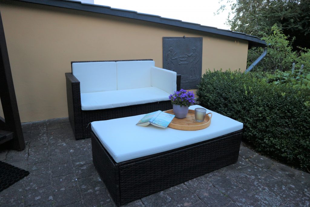 Direkt vor der Eingangstür haben Sie eine gemütliche Terrasse, auf der Sie ungestört verweilen können.