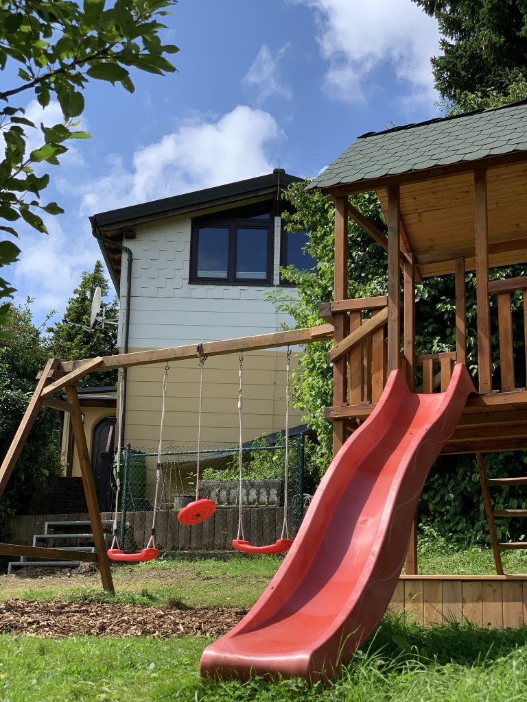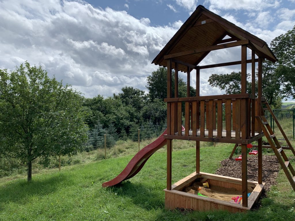 Für unsere kleinen Gäste haben wir das Grundstück erweitert und haben einen Spielplatz mit Sandkasten, Kletterturm, Rutsche und Schaukeln gebaut. So können die Eltern gemütlich auf der Terrasse entspannen, während die Kinder sich auf dem Spielplatz austoben können.