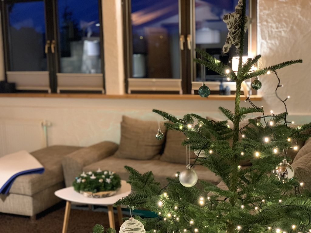 Im Advent schmücken wir auf Wunsch für unsere Gäste gerne weihnachtlich inklusive einem wunderschönen, herrlich duftenden Weihnachtsbaum im Wohnzimmer.