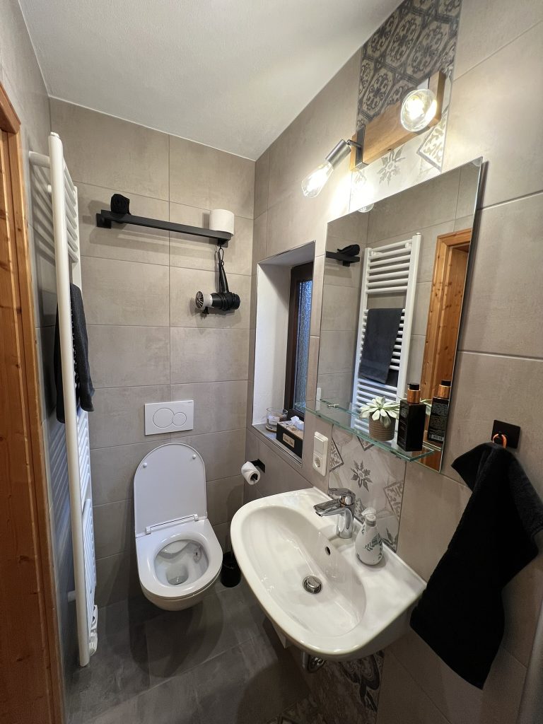 Im Dezember 2023 haben wir das Bad im Wohnung A mit viel Herzblut komplett saniert. Das vollausgestattete Badezimmer mit Dusche lässt keine Wünsche offen.